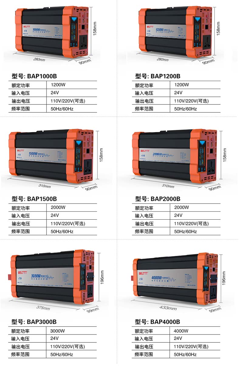 BAP2000A 2000W纯正弦波逆变器产品具有以下特点