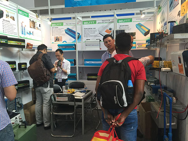 在BELTTT光伏发电演示系统前,前来咨询的国外客商络绎不绝。现场工作人员不断向国外客商介绍系统成本及能源转换效率,BELTTT光伏发电系统核心设备逆变器及控制器均由BELTTT自主研发,采用国际领先的技术,光伏利用率高达98%,搭载BELTTT智慧能源管理系统,不仅能实现发、用电一体,同时可将光伏多发的电并入到城市电网。